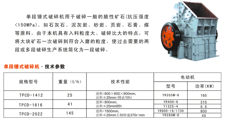 单段锤式破碎机